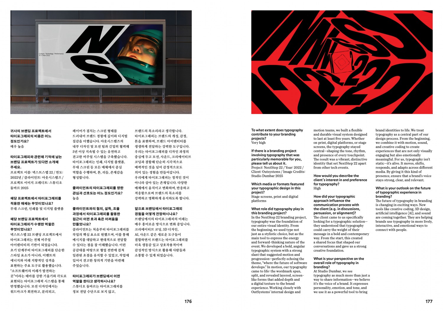 특집은 프로파간다와 브랜딩이라는 굵직한 두 주제로 묶었다. ‘특집 1 타이포그래피와 프로파간다’에서 최성민의 「“진심을 전하고자 제 손글씨체로 인사를 드리오니”」는 구성주의 타이포그래피에서 손글씨까지, 역사 속 정치와 타이포그래피의 관계를 되짚었다. 특히 지난 내란 정국과 대선에서의 몇몇 사례를 조명해 동시대 정치에 녹아 있는 글자의 역할을 분석한다. 심우진의 「《시대 정신》 프로젝트 되돌아보기, 우린 어디로 흘러가는가」는 일상의실천과의 인터뷰 형식으로 기록되었다. 일상의실천이 기획한 《시대 정신》 프로젝트를 주제로 이번 프로젝트의 특징을 여섯 가지로 추려 살폈다. ‘특집 2 브랜딩 전략과 타이포그래피’에서 전우성의 「브랜드를 인식하게 하는 또 하나의 요소, 타이포그래피」는 브랜드를 인식하게 하고 성격을 부여하며 기억에 각인시키는 강력한 도구로서 타이포그래피가 지닌 가능성을 고찰한다. 이어서 「수집: 브랜딩과 타이포그래피 2025」에서는 디자인 스튜디오에서 에이전시에 이르는 다양한 규모의 디자인 집단을 대상으로 설문을 진행했다. 이를 통해 타이포그래피가 실제 브랜딩 안에서 어떤 방식으로 선택되고 운용되는지를 분석할 수 있다. 허민재와 박재형은 「호텔 브랜드 디자인에서 마스터 브랜드의 보증과 로고타입 그리고 타이포그래피」에서 글로벌 호텔 체인 3사 메리어트, 힐튼, 하얏트의 로고타입과 타이포그래피 사례를 분석해 브랜드와 타이포그래피가 유기적으로 작동하며 일관된 경험을 형성하는 과정을 해부한다.