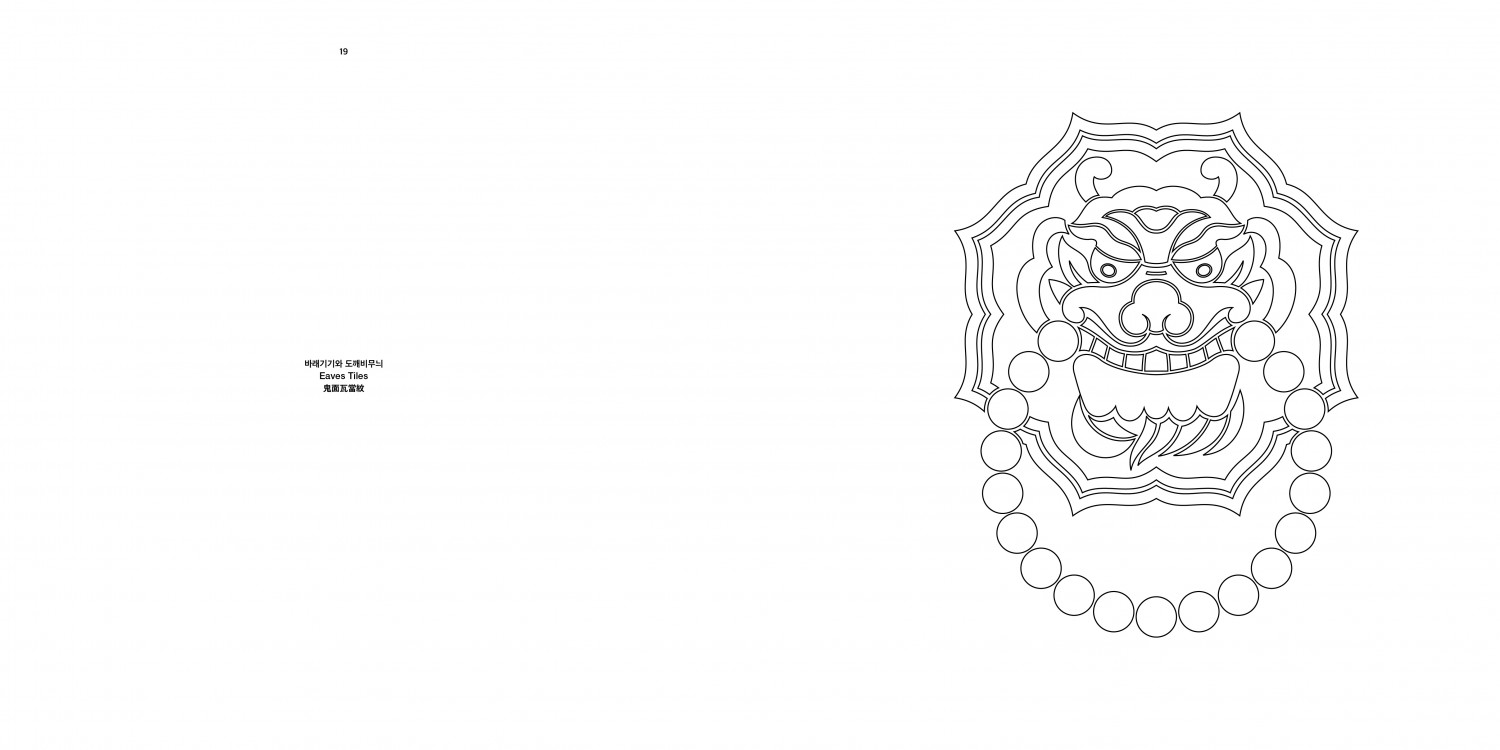 삼국시대부터 조선시대까지, 옛 유물에서 발견한 53가지 도깨비무늬를 한 권에 담은 컬러링북이다. 디자이너 안상수가 한국전통문양집 『도깨비』(안그라픽스, 2020)에 실은 문양 가운데 50여 가지를 골라 엮었다. 벽돌 장식과 나무 조각을 비롯해 막새기와와 바래기기와, 절문짝과 사당문짝 등 다양한 유물에 새겨진 도깨비들이 컬러링 도안으로 새롭게 태어났다.
